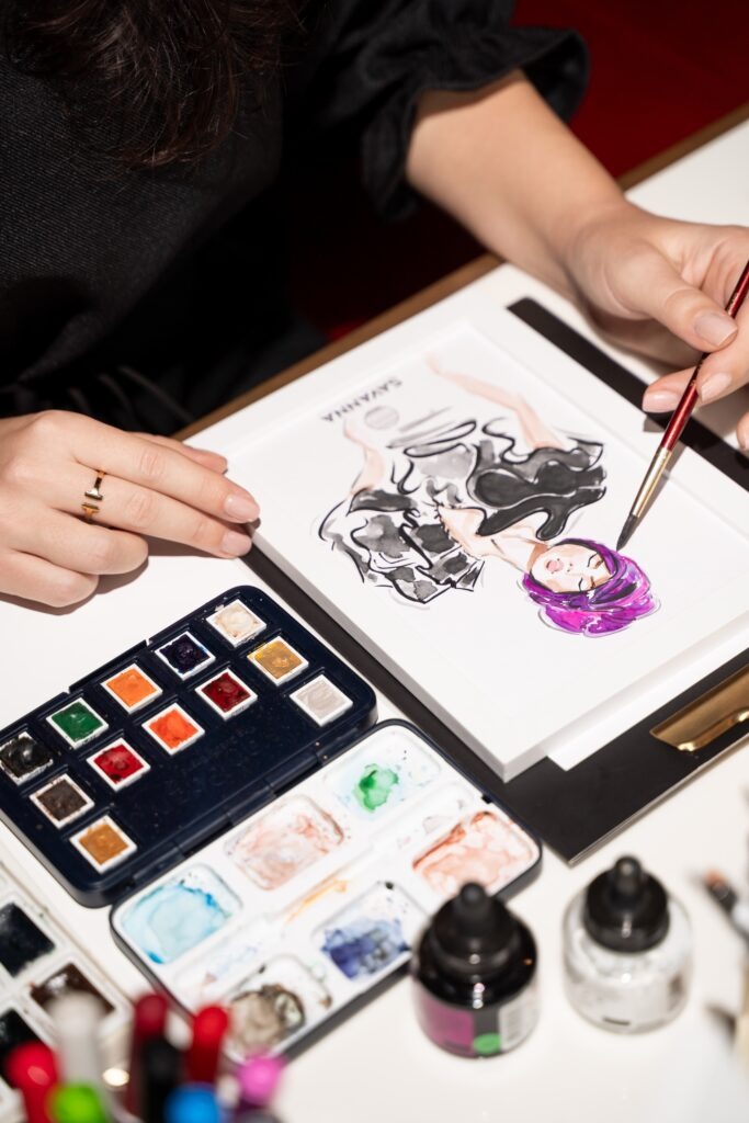 I’m Ksenia, fashion and event illustrator based in Dubai, specializing in creating personalized live illustrations at events and brand activations.