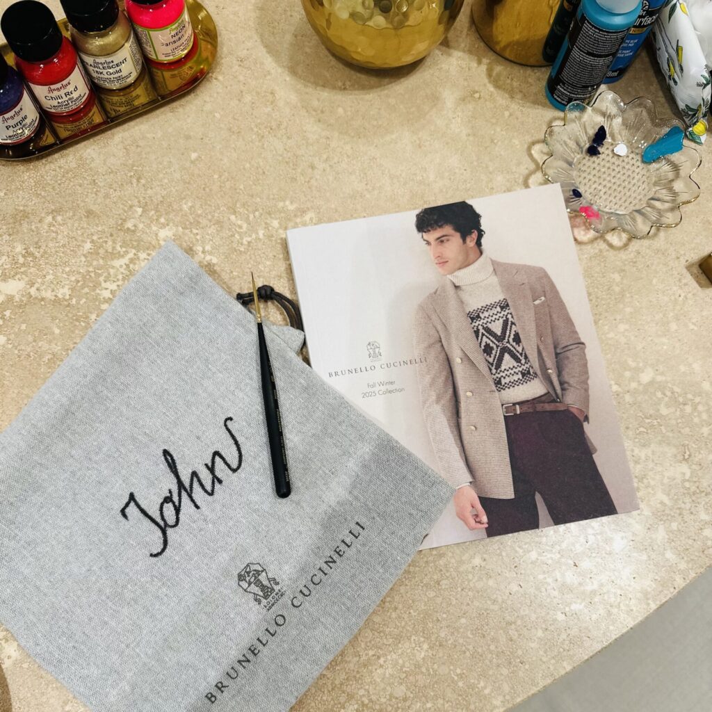 (shoe bags personalization, acrylic paint)